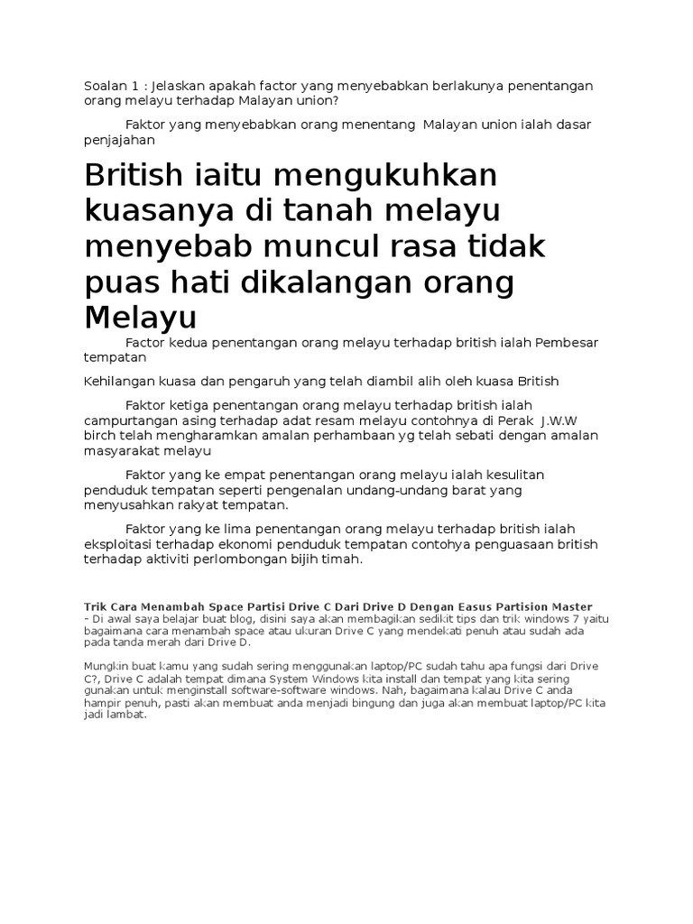 Jawab Semua Soalan Di Bawah Malayan Union Pdf