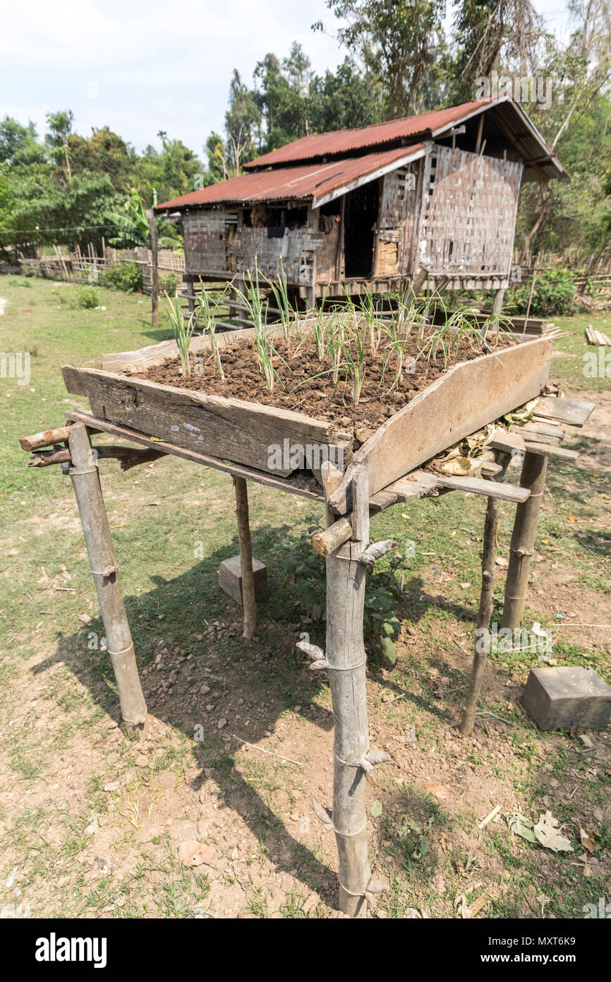 Raised Vegetable Bed To Prevent Being Eaten By Livestock Village Of Nong Ping Laos Stock Photo Alamy